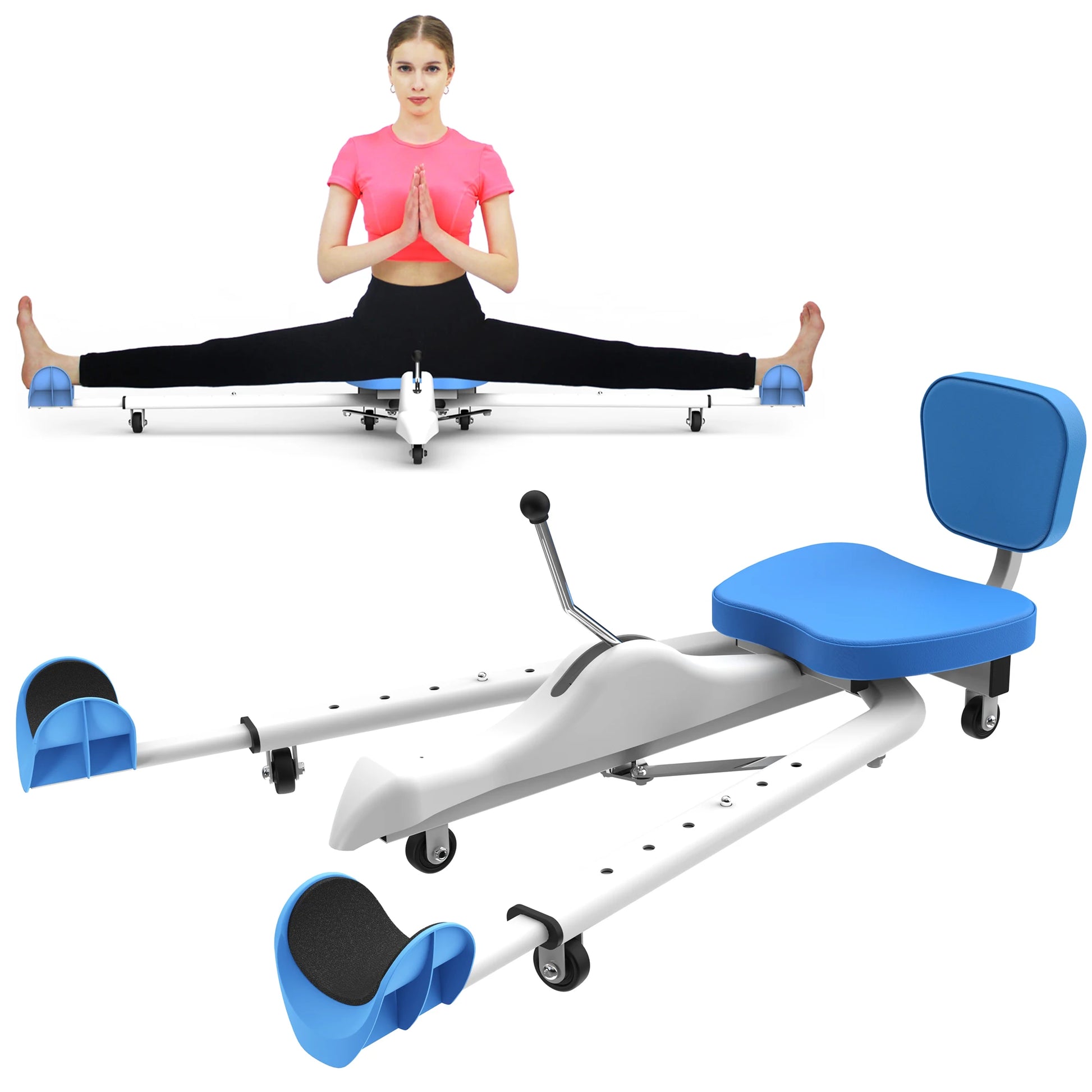 1. The Leg Split Stretching Machine is made of high-quality metal, stable, durable, and sturdy. The bottom has mute wheels to avoid scratching the ground. The seat, waist, and leg cushions are made of soft leather for unparalleled comfort, and the sturdy bottom universal wheels ensure smooth and flexible stretching.